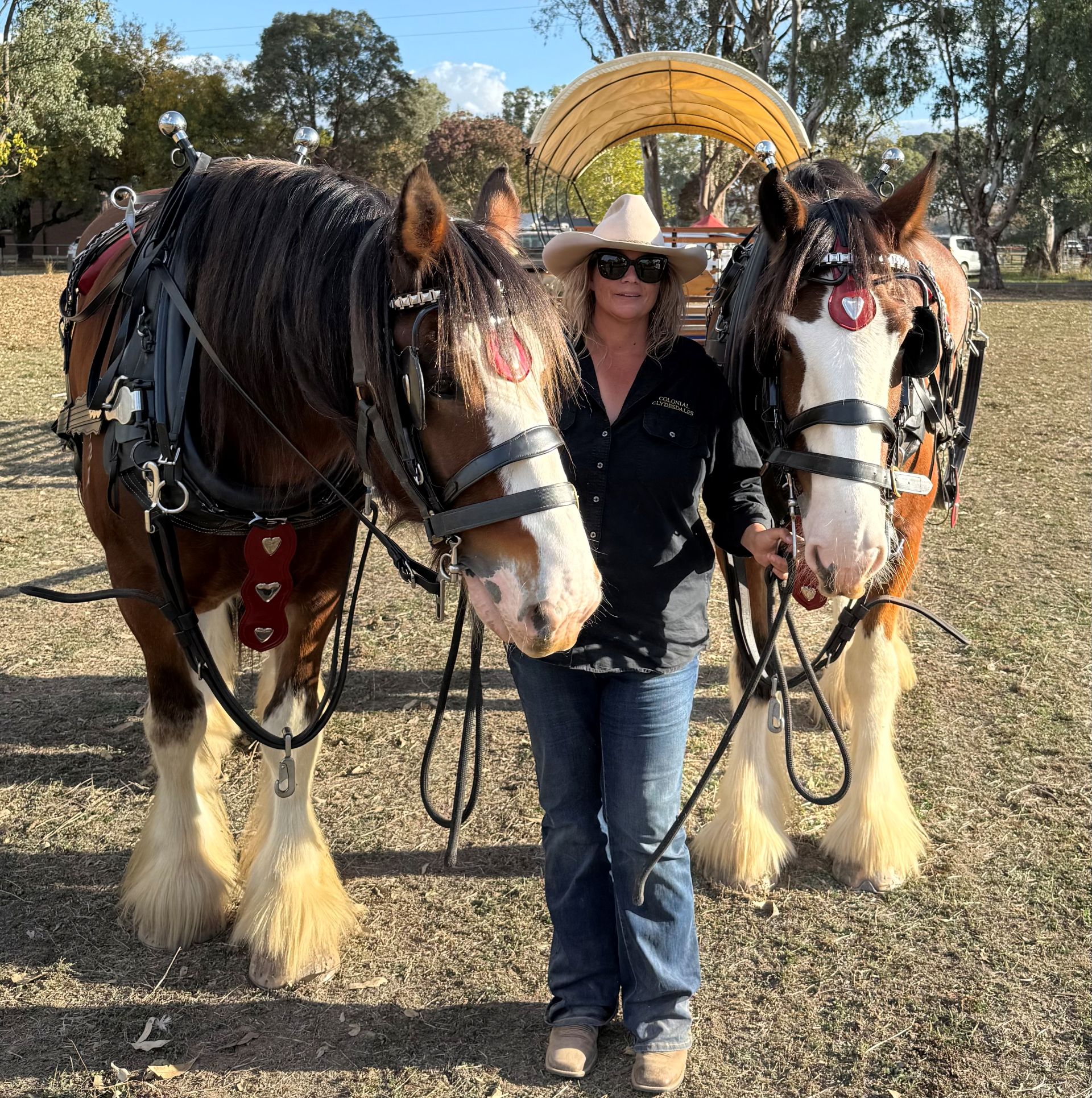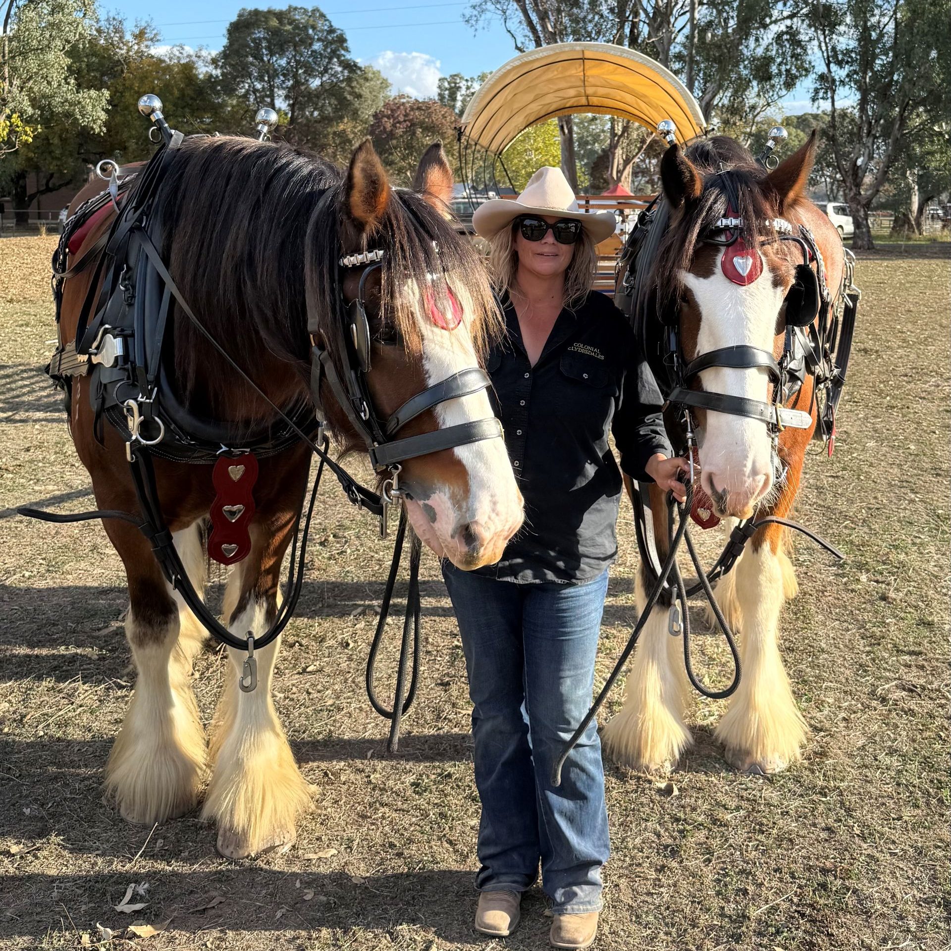 In 2007 she founded Colonial Clydesdales & Carriages, and today she travels across Australia with one of the last professional Clydesdale teams—preserving their heritage, sharing their beauty, and creating unforgettable experiences for people everywhere.