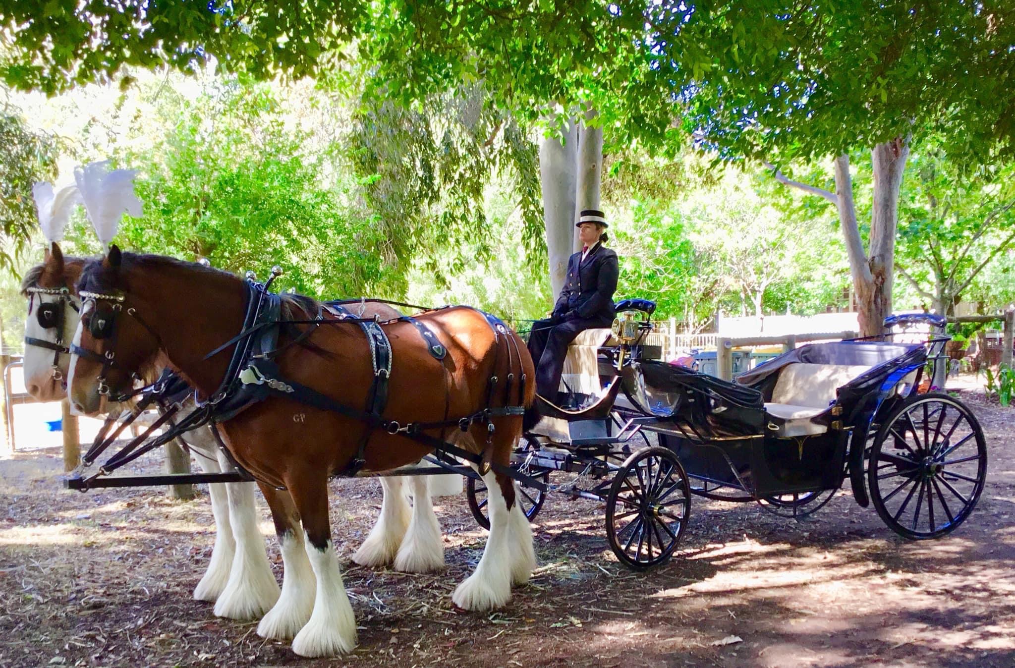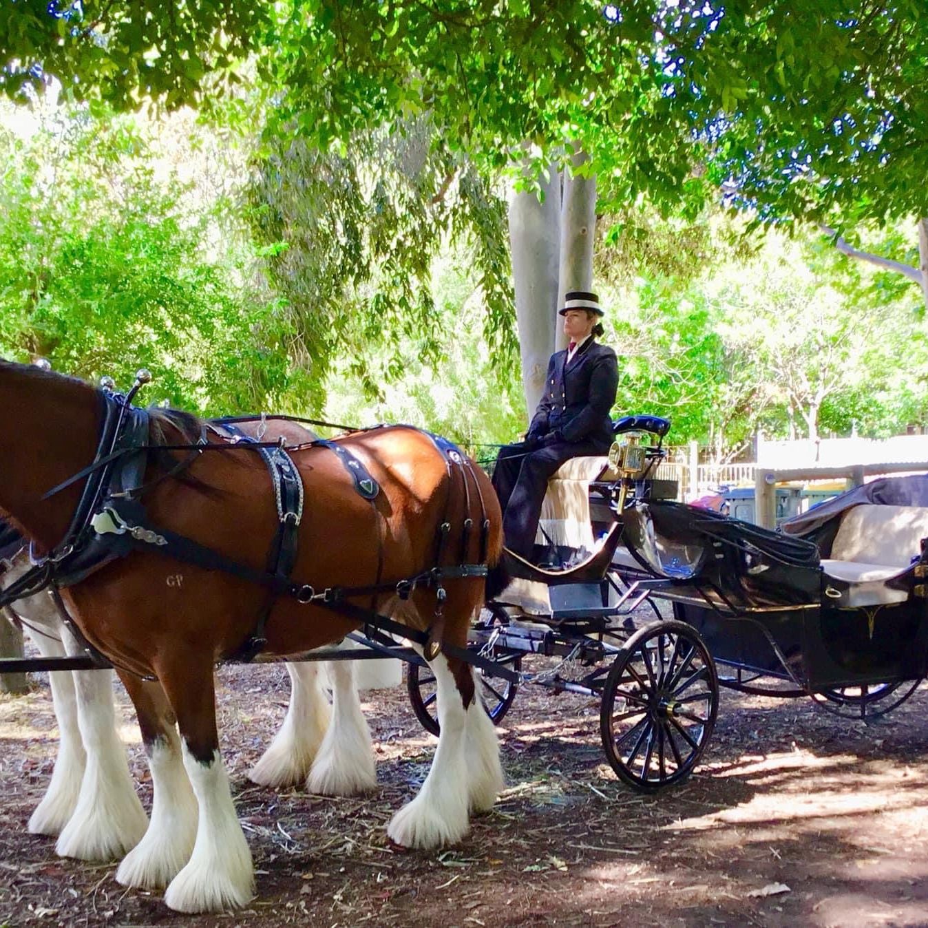 Emma achieves this by presenting the Colonial Clydesdales at public events such as agricultural shows, festivals and events. In addition, she also caters for private weddings, parties, funerals, anniversaries and functions, corporate promotions and marketing. Her Clydesdale horses and range of carriages, wagons and horse drawn farming implements are available also for ridden events, photo shoots and movies,